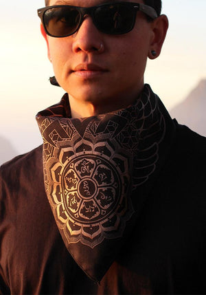 Our Ascendant Chakra design contains the Sanskrit mantra "Om Mani Padme Hum" (the jewel within the lotus) and the third chakra, the Manipura Chakra. Manipura, which means “lustrous gem," is a source of personal power and governs self-esteem, warrior energy and the power of transformation. It’s mixed here with repeated patterns and hard angle lines for depth, drawing inspiration from sacred geometry and flower of life.