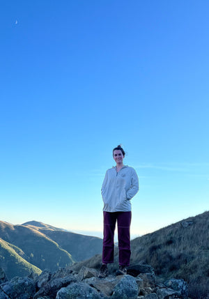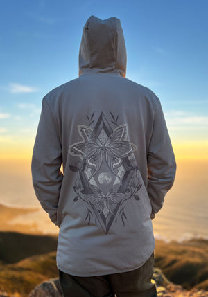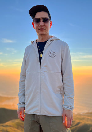Alex Moon x Rythmatix collaboration on a stretchy zip-up hoodie perfect for hiking, running errands or lounging around.
