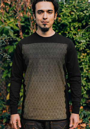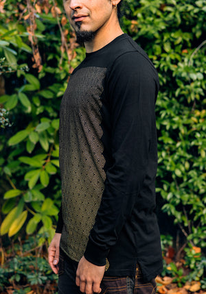 Texture is a design experiment of gradient meets texture. A hand drawn infinity triangle was transformed into a repeated pattern now printed on your shirts!