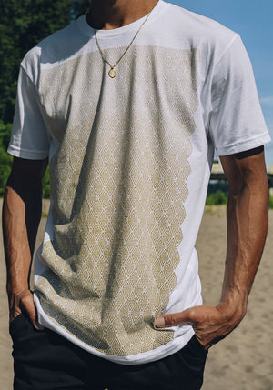 Texture is a design experiment of gradient meets texture. A hand drawn infinity triangle was transformed into a repeated pattern now printed on your shirts!