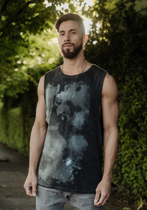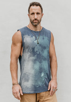 A hybrid of our Color Wash style and traditional geometric patterns, this tank is printed in a variety of colors with fades of water based ink. Color Wash is a new style of printing developed in house meant to blur the lines of screen printing and tie dye. Printed in layers upon layers to create textures on textures.
