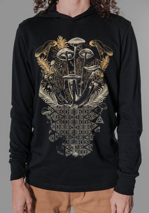 • Printed on lightweight black 100% cotton long sleeve hoodies